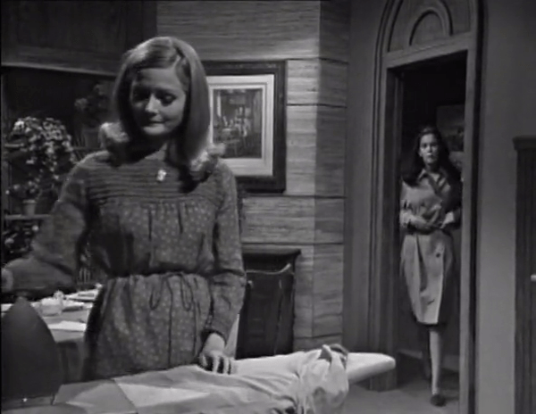 Victoria returns to the house and finds that Carolyn hasn’t moved, and also that this mansion has an ironing board in the dinette.