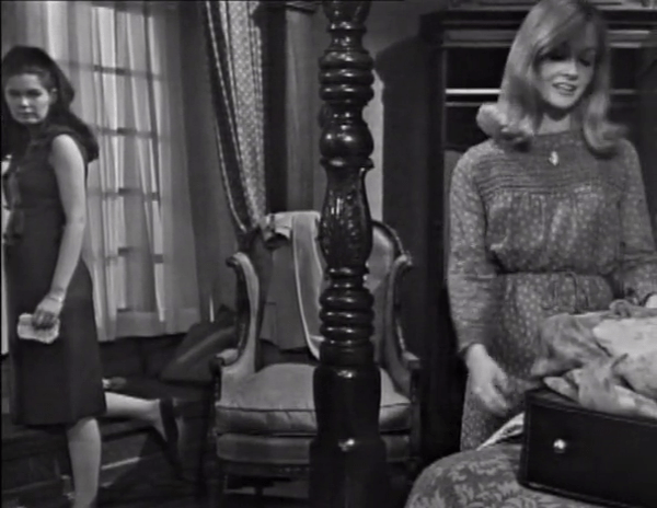This episode also does a lot to reinforce the contrast between Vicky and Carolyn: Victoria can choose to go whenever she likes, yet Carolyn feels she herself is a prisoner of Collinwood. When Vicky suggests Carolyn visit her in New York sometime…