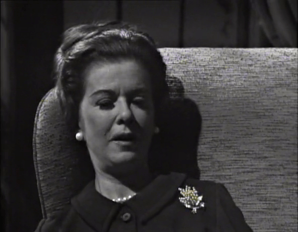 Looking off into the distance, again, is Joan Bennett’s speciality, which is odd given she was wretchedly near-sighted her entire time on this show.