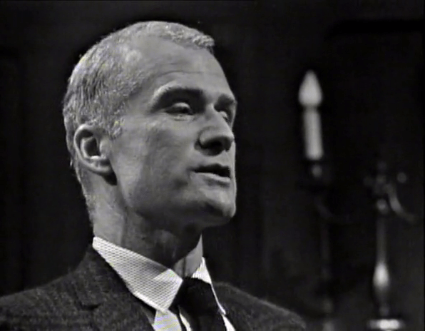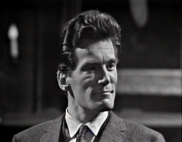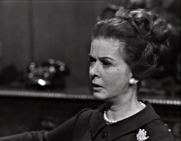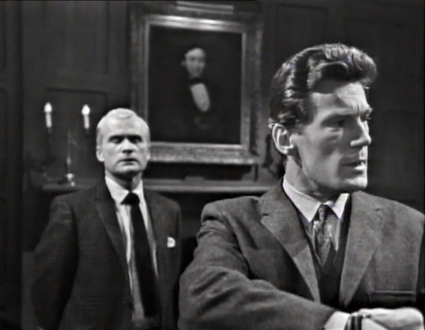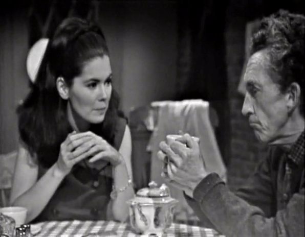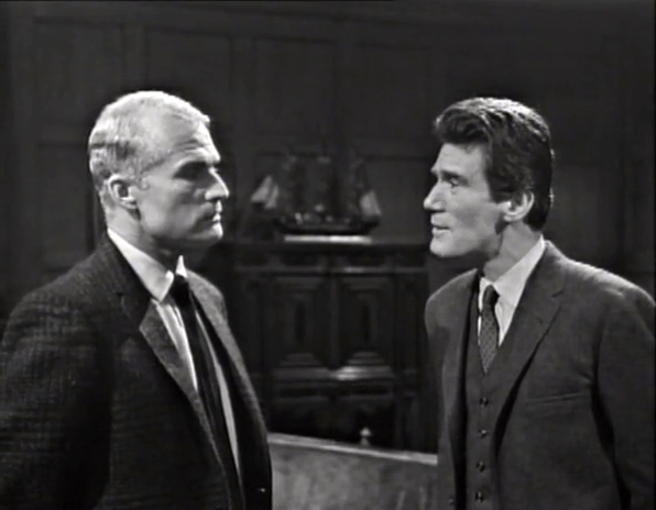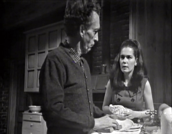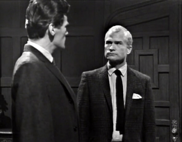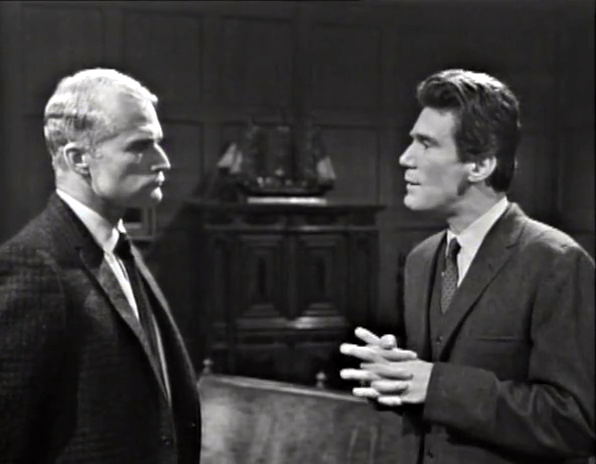 Art Wallace thinks he’s very clever. Frequently in these earliest episodes, scenes are linked by cutesy pieces of dialog where something a character says at the end of one scene, is echoed, or referenced, or answered by another character at the beginning of the subsequent scene.