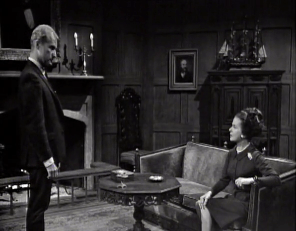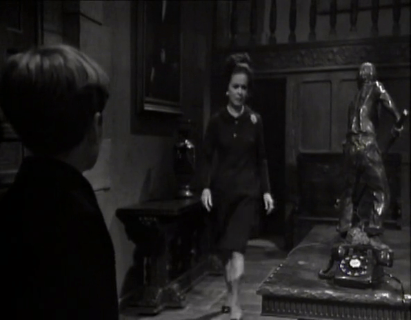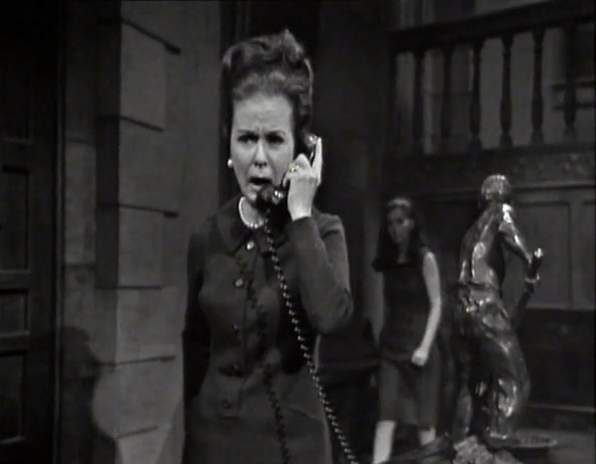Liz goes to silence the horrendous bleating of 1966 telephone technology, and finds David creepily staring at the phone without making any moves to answer it.