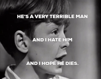 Ah, yes. I’m sure him finally saying that, but in a creepy monotone while staring off into space, proves at last that Victoria’s “Stop being so crazy!” technique is the future of child pathology.