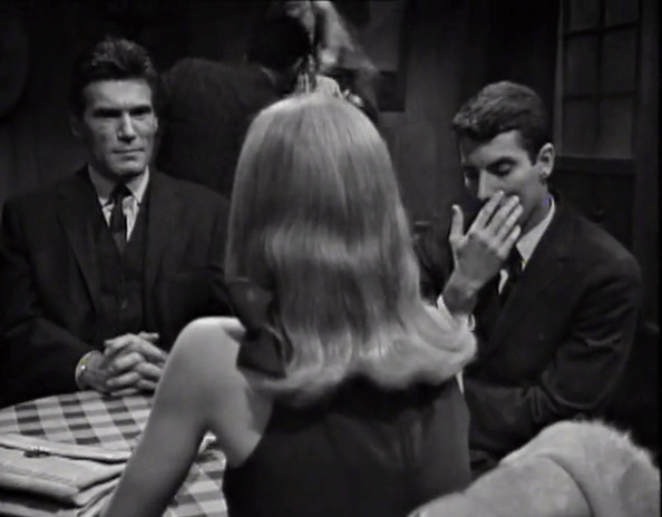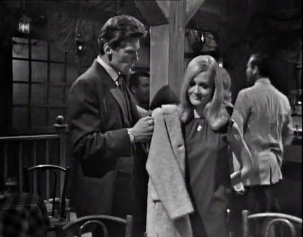 Liz asks Vicky if she knows which movie Carolyn went to, though there’s only one area movie theater and it isn’t likely that a small town cinema in 1966 would show more than one picture at a time, but either way, this gives Vicky a chance to very belatedly tell Liz that Carolyn has gone to the Blue Whale for the express purpose of Burking with Devlin while her boyfriend watches.