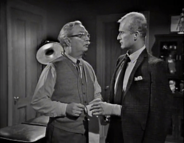 No, that is not an Audio Animatronic from Disney World’s Main Street U.S.A. That is Dr. D. Reeves, the local physician and, by extension, Collins family doctor. Played by the amiable character actor Fred Stewart, he has no idea what’s coming to him.