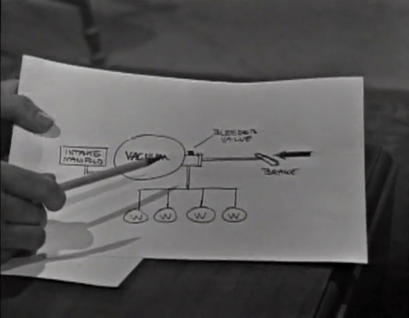 So, the valve, once removed, causes a leak of hydraulic fluid that eventually stops the brakes from operating. That’s all fine and dandy, and it’s nice that Art Wallace did his research, but please consider that this soap opera just described a clean and relatively easy method of murder, complete with pictures, to an audience of housewives.