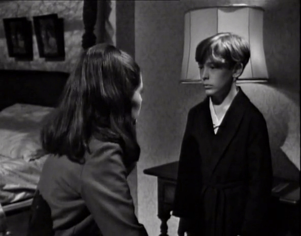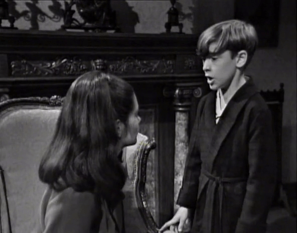But David doesn’t intend to remain hidden for long. He creeps into the drawing room after his father, presumably for no other reason than to see if he can get Daddy to soil himself.