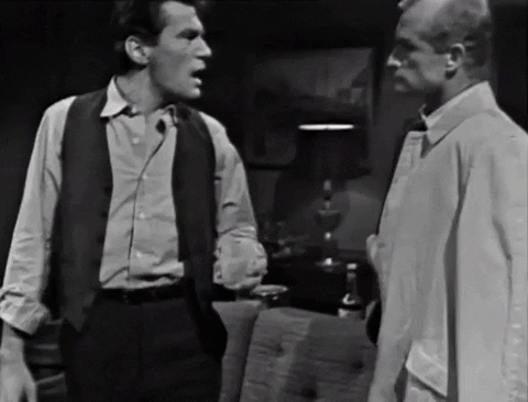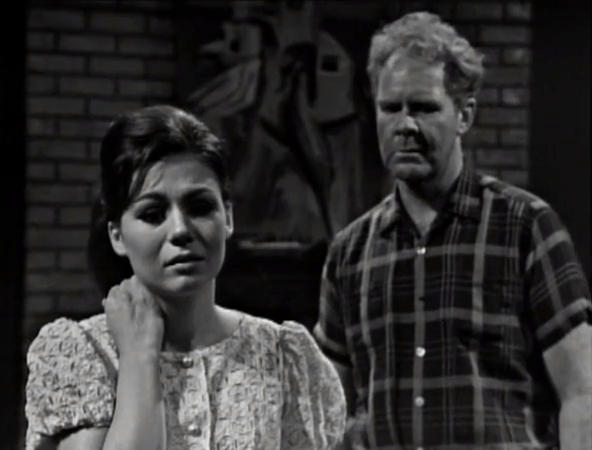 It is something, in the same episode as we have Mark Allen projecting ‘threatening man in alley’ energy onto two young men, we have these two titans of the stage going at it. This is the confrontation we were promised when Carolyn brought Burke to Collinwood in the first place, these two heavyweights duking it on in a set that suddenly seems too small to contain them.