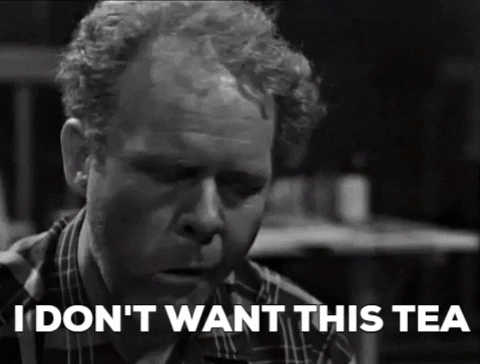 Maggie begins pouring the tea, which Sam is at first receptive of, until he becomes suspicious of Maggie’s perceived suspicions of him, loudly declares that she must think he’s plotting with Burke to kill Roger (lolwut?) and…