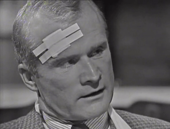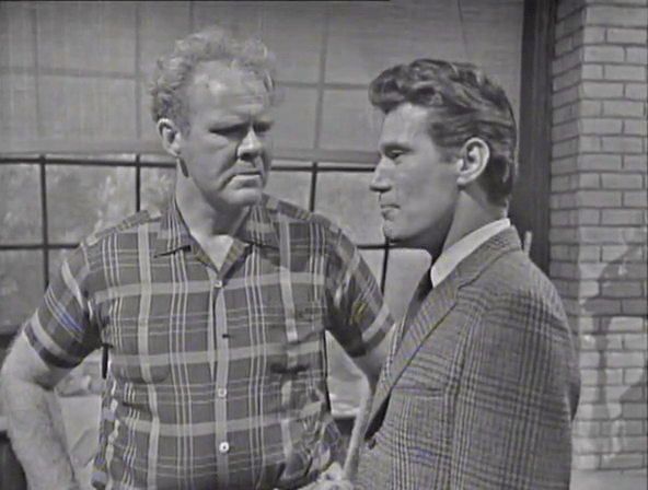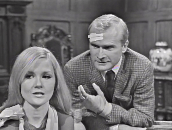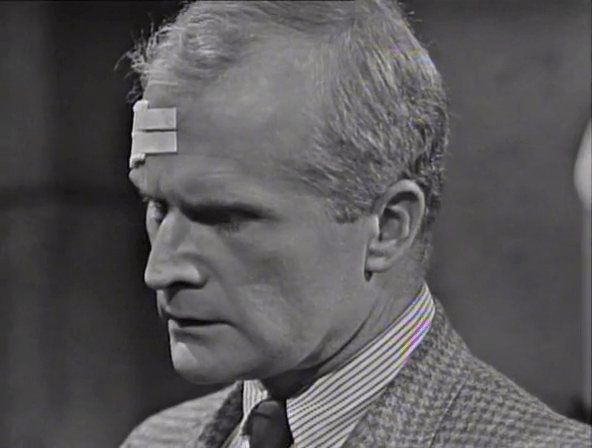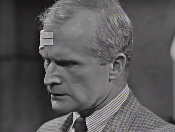 About his tangle in Burke’s hotel room last night. Burke, Roger explains, is out of chances. He’ll see Burke thrown behind bars for what he’s done. Sam, who exists here only to provide fodder for Louis Edmonds to react to, wonders if that’s a good idea.