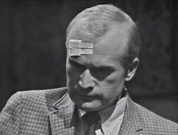 Nancy Barrett doesn’t seem surprised at any of this, and the lines seem to fit into the script, so I think we can rule out another 100 Miles incident, but the weirdness of the whole thing makes you wonder if Louis Edmonds complained to Dan Curtis about having to wear this stupid sling which, after all, is severely inhibiting his theatrical gesticulations.
