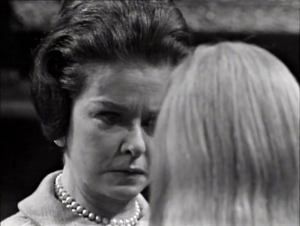 Yes, David’s mother. Did you know she and Burke were “very good friends”? Well, now you do. This is clearly a significant piece of the puzzle. We got an almost reference to this when Burke came to Collinwood, but it was hastily shuttled aside and, beside this, was cloaked in the usual homoerotic subtext that pervades all Burke and Roger’s scenes.