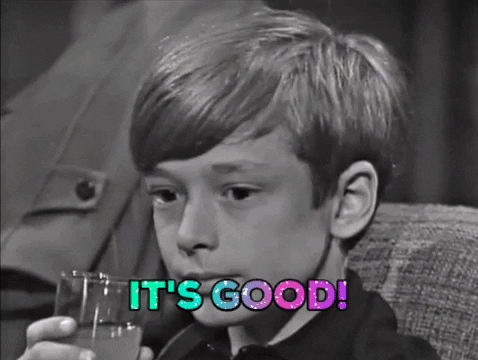Burke then points out that it’s “a couple of different fruit juices”, presumably to reassure us at home that he wasn’t giving this kid booze. What I like about this is that it suggests Burke is so attached to this drink he cooked up when he was a kid that he has “different fruit juices” at hand in his mini fridge or whatever.