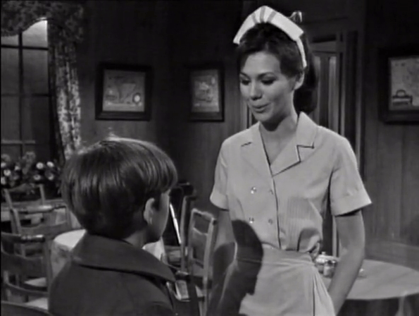 It’s the freshest, most natural performer on the show! The rising star they still haven’t figured out how to utilize! The nine-year-old criminal runaway was caught trying to break into the red herring’s room and this otherwise uninvolved waitress caught him! Three different characters tied together by the contrivance of the story! It’s almost like I’m watching some kind of soap opera!