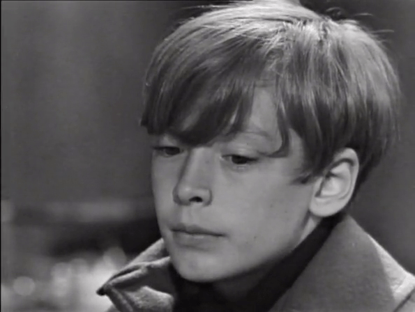 This is Dark Shadows’s first proper storyline. It began 13 episodes ago, at the end of the show’s third week. Roger Collins crashes his car while driving down Widow’s Hill to attend a meeting with his rival Burke Devlin. We learn, not immediately after, but immediately before that Burke, who is seized by the entire canvas as the prime suspect, is innocent and the true culprit is Roger’s disturbed son David, who resents Roger’s attempts to “send him away” like his mother.