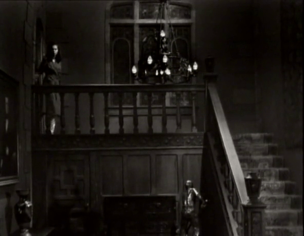Vicky claims she came downstairs to find something to read, because as we’ve seen, there are very many books in this room. You just can’t see them because of the dignity of the paneled walls.
