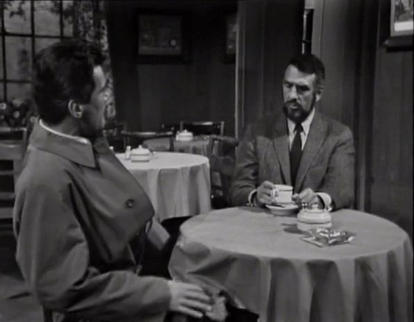 Malloy admits that, unlike in Strake’s case, he can’t prove Burke has been doing this prying and what follows is a very, agonizing pause in which we can only assume Joan Bennett is desperately trying to remember her line, or else waiting for an imaginary line she has convinced herself Frank Schofield has to say.