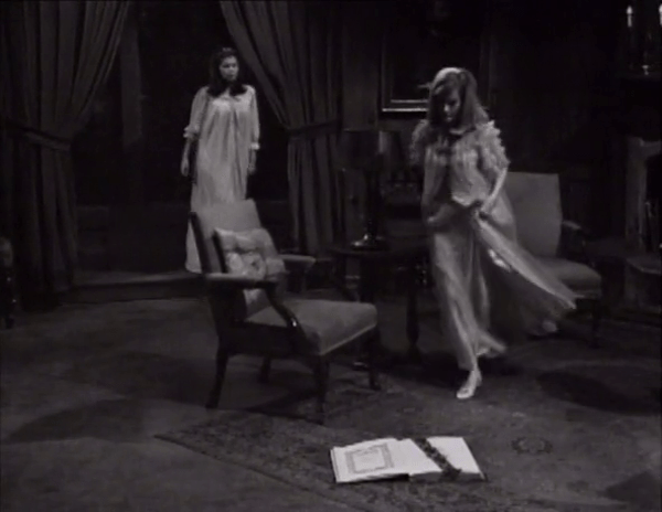 But the slumber party is put off as Carolyn again hears a mysterious Thing going Bump in the Night. Vicky tries to write it off…until it happens again, a much more distinct, thudding noise.