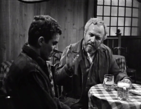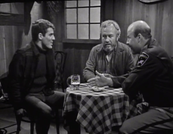 Art Wallace attempts again to link two scenes together. Sam is pressing Joe, a fisherman, as to how likely it is the police can trace the tides to the source of Malloy’s death.