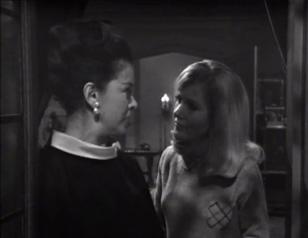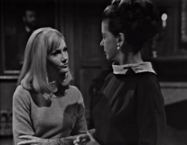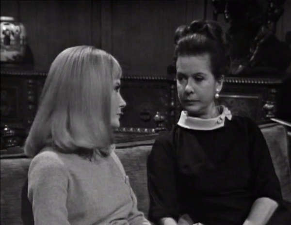The episode begins with Elizabeth and Carolyn, Maggie having departed Collinwood in the minute or so between this episode and the last. Carolyn is salty about Maggie’s unprecedented presence at the house, and the fact that they were talking about Big D.