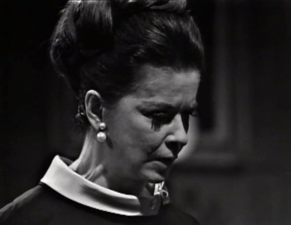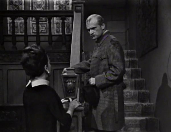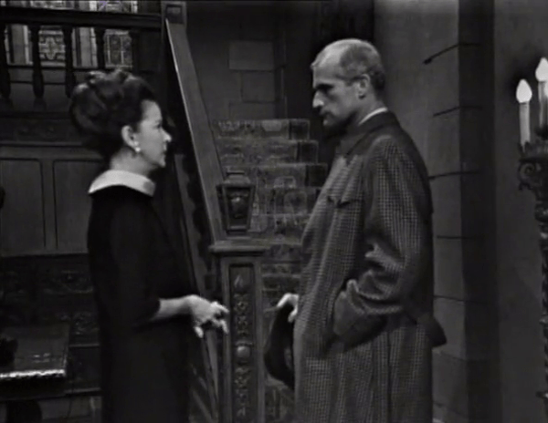 We begin with a sight that is by now quite familiar: Burke standing in the Collinwood doorway, staring down one of the inmates of the house, in this case our Mrs. Stoddard.