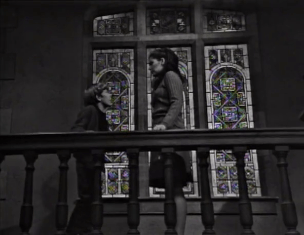 You go from that long, quiet stretch with the only sound being the whistling of the wind to this sharp sting cord (courtesy of Bob Cobert’s always-effective score) and there’s this bright light moving through the shadows toward the house. A figure carrying a lantern, steadily approaching with the house’s inmates none the wiser.