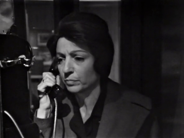 Mrs. Johnson is calling Burke who…I guess isn’t in his hotel room or else she would’ve gone upstairs to see him. Lord knows where he is and how she knew who to call to find him. Never mind. Mrs. J gives Burke, and us, a rundown as to her conspiracy with him, all of which was laid out over the course of her last appearance, within one episode.