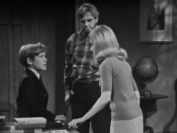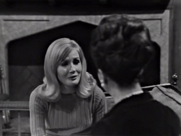 Elizabeth is rightly exhausted, exasperated and irate. She takes both daughter and nephew to task, getting Carolyn to apologize, though I’m still not sure whether this was an offense that merited an apology. David, however, is more reluctant to apologize and, when Liz warns him against mentioning Burke’s name in Collinwood ever again, he races from the room and provides us a very accurate summary of all of Dark Shadows to this point in time.
