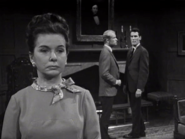 Roger suggests the common wisdom that Liz is waiting at Collinwood indefinitely for her husband to come back from…wherever he went is a fiction, indicating that he observed certain marital unpleasantness between Liz and Paul during his “holidays from school”. This is a pretty major piece of lore and it’s just gracelessly dumped in the last act, unconnected to anything, with not a second spared to examining it. That’s my show.