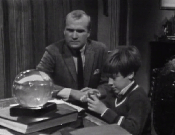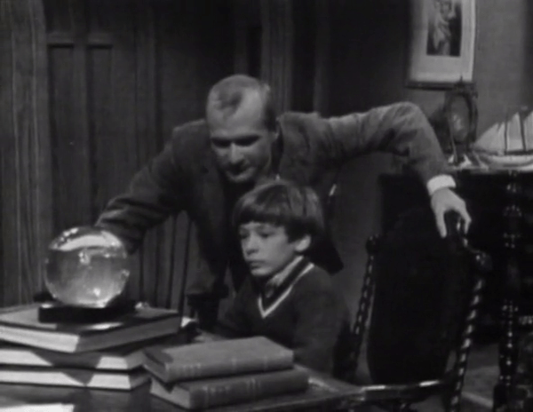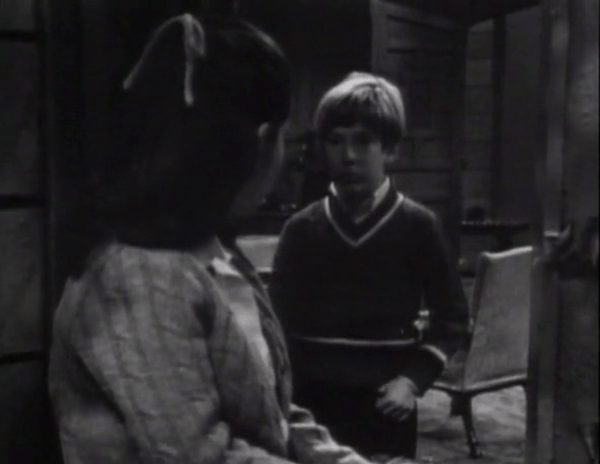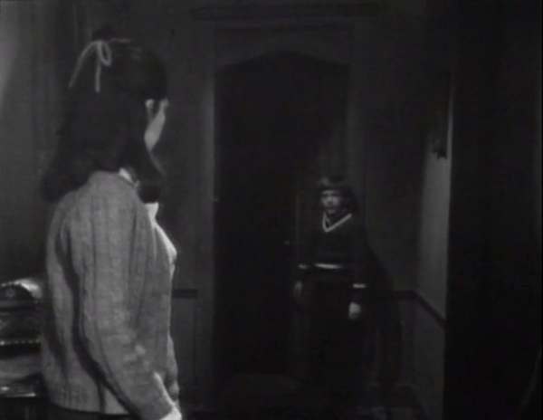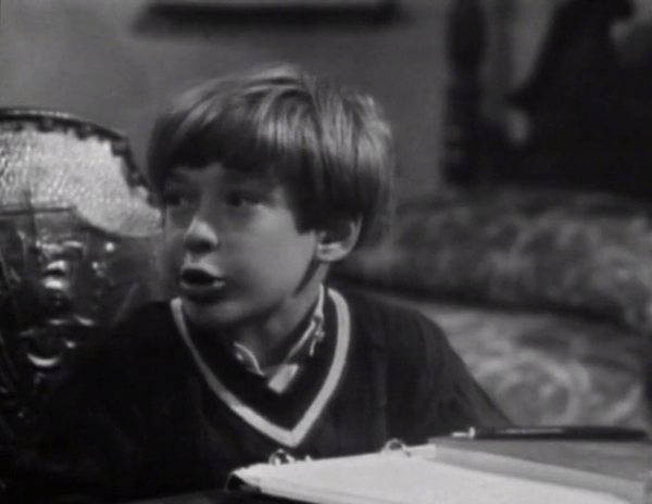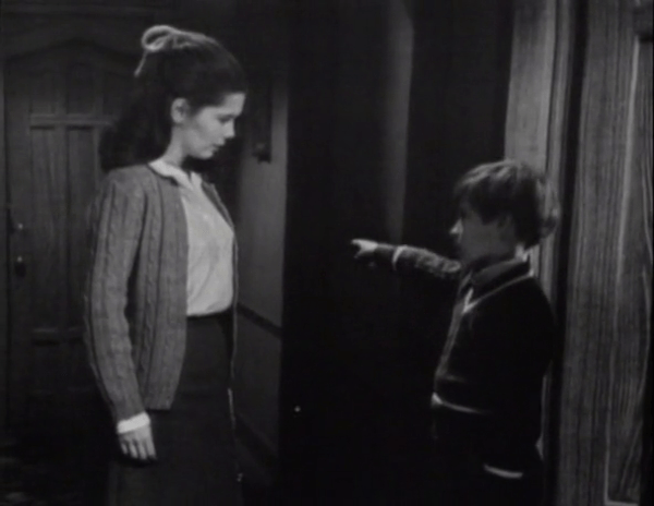 Well, at least he’s gonna have a good time this evening. The same can’t be said of poor Miss Winters who finds herself, again, alone in an old dark house, with a dangerous, small boy who wants revenge for a crime she did not commit.