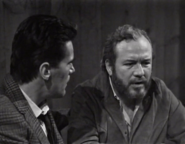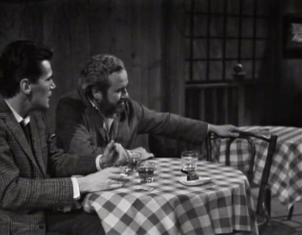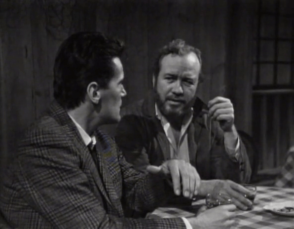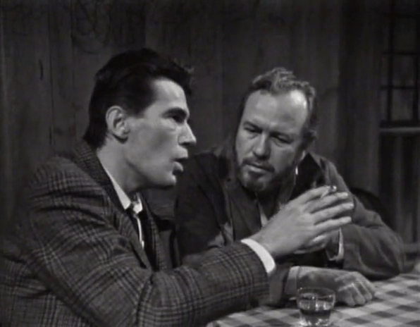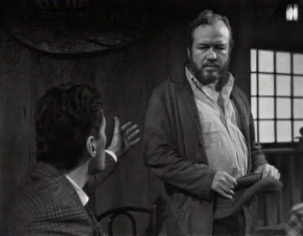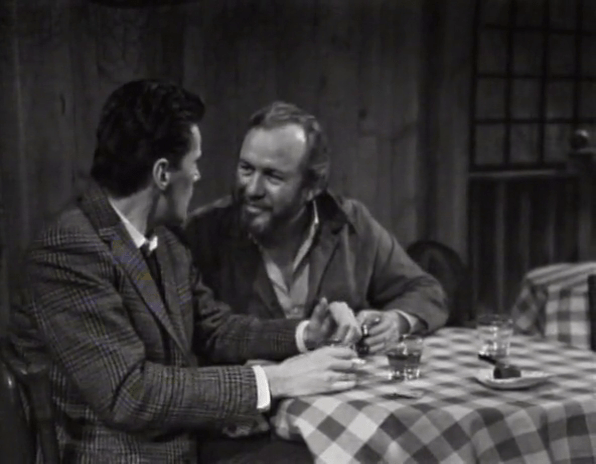 What we get here is a very human side of Burke Devlin. We’ve seen him…not dickish, occasionally, in those few instances when he expresses concern, sympathy and even a desire to help Victoria. But even then, he usually is in control of the situation, the guy with the cards. Here, disheveled and drunk, appealing to none other than the town alcoholic, he seems pathetic…sad.