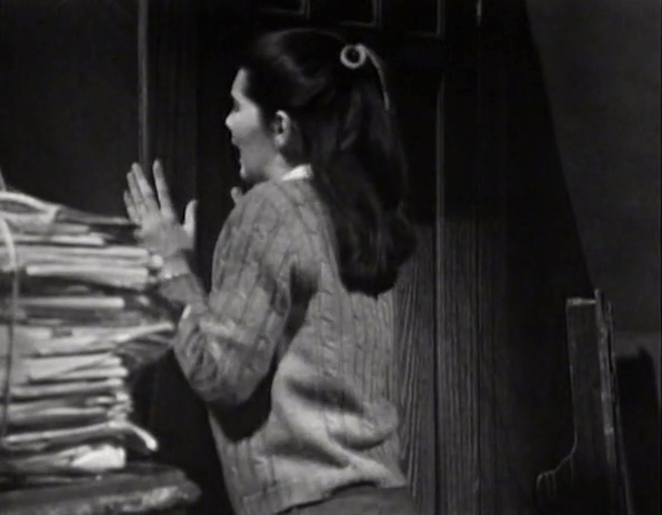 This is, of course, not the first time we’ve seen a ghost on Dark Shadows. The first explicitly supernatural event occurred in Episode 52, the night Vicky and Carolyn saw Malloy’s body in the sea at the foot of Widow’s Hill. In that instance, an unseen hand opened the Collins genealogy to Josette Collins’s entry.