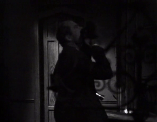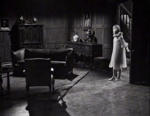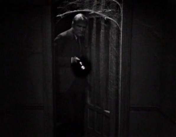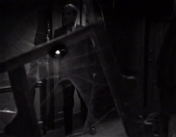 What follows is an extraordinary sequence in which the camera tracks Louis Edmonds through what can’t possibly, in reality, be a very large piece of the set. As we discussed, the East Wing doesn’t really have a set outside the room Vicky is trapped in. The rest of it is mostly undressed space strewn with dusty junk. Through a remarkable combination of set design, camera work, and Bob Cobert’s ominous soundtrack, however, it really feels like we’re following Roger through a labyrinthine maze.