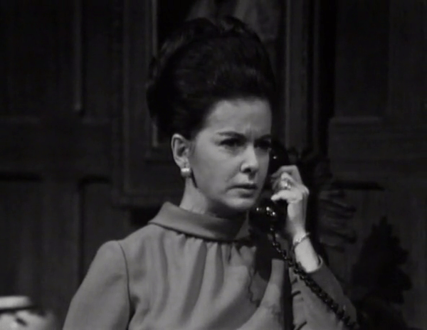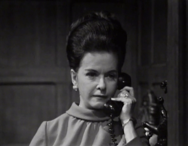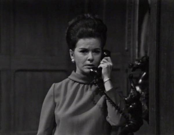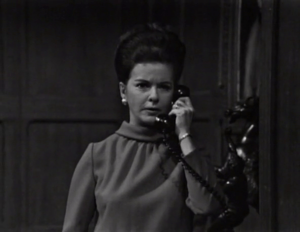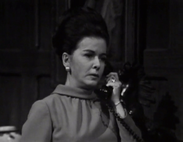 Joan Bennett is the cast member most often relegated to the dismal role of carrying on a conversation with a non-existent person on the other end of a telephone call. What makes this sadder than it already is is the fact that she’s the biggest name in the cast, and the only one to have ever earned the title of “movie star”, unless you count Louis Edmonds’s, er, spirited turn as the villain in a terrible spy movie a couple of years before all this.
