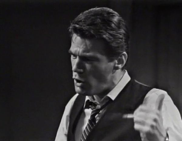 Naturally, respected character actor George Mathews is taken aback by Mitch’s complete abdication of his responsibilities as a performer and gawps in shocked silence for a while before he either consults the Teleprompter, or checks to see if somebody is bringing out one of those vaudeville canes to drag Mitch off the set.