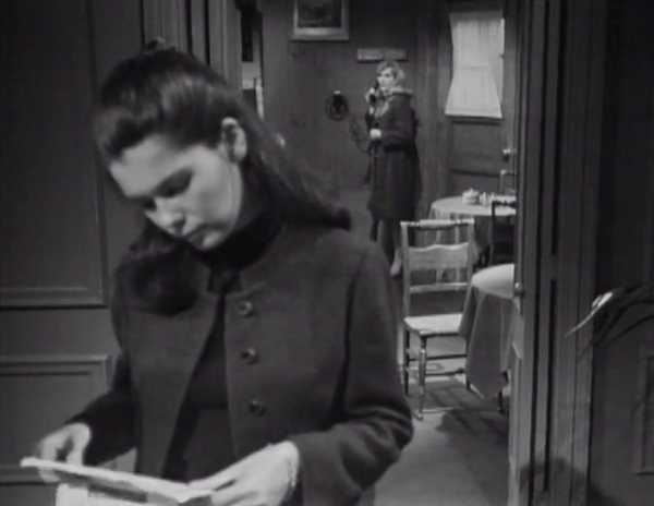 So, Act II opens with some more location footage, which they’ve been getting sparer about using lately, this time of Vicky and Carolyn getting out of the latter’s bomb-ass car in front of the Collinsport Inn.