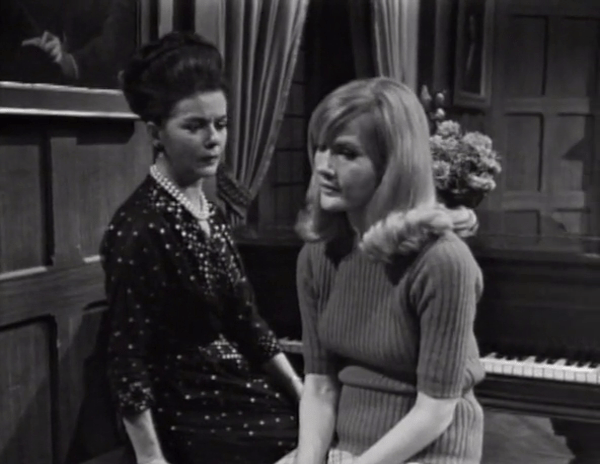 We return to Collinwood, where Elizabeth is playing the drawing room piano for the first time in a long time. Not that we see her doing this, presumably because Joan Bennett wasn’t actually a pianist. Still.