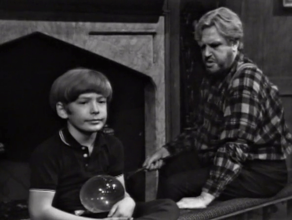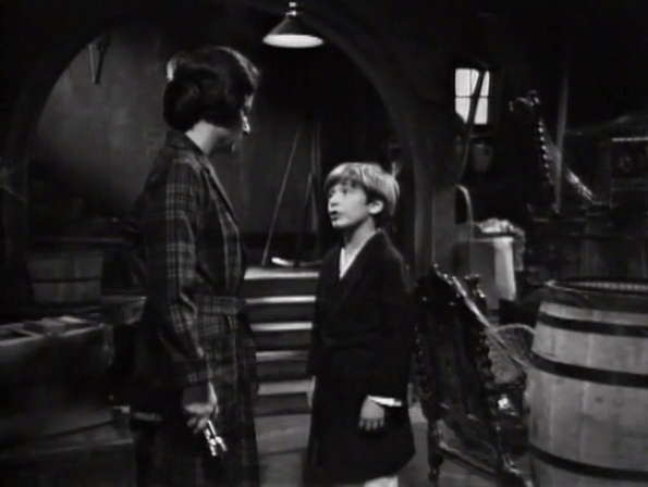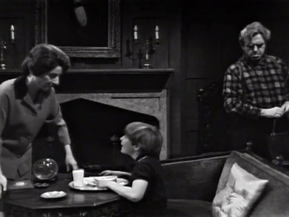Mrs. Johnson covers her ass, claiming she only came down here investigating a noise, which was probably David himself. For his part, he tells the just as plausible story that his crystal ball prophesied that a ghost would appear in the basement tonight and he wants to see it.
