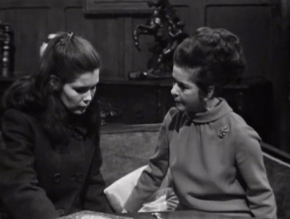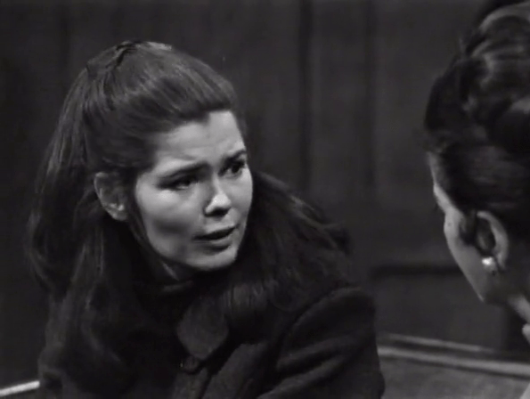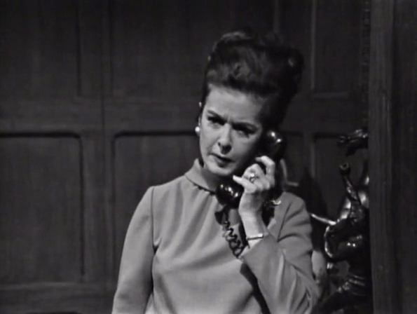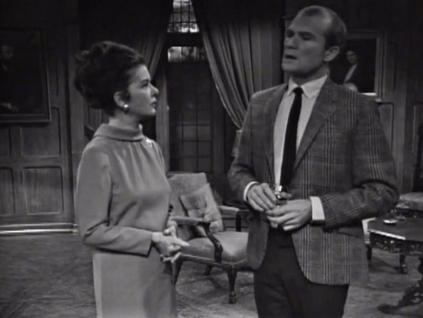 Elizabeth is considerably out of the loop these days and has to be told by Roger that Vicky believes Malloy’s death wasn’t an accident after all. Liz asks where Vicky could’ve gotten such a strange notion from and then Roger starts flubbing. Or, well, Louis Edmonds does.