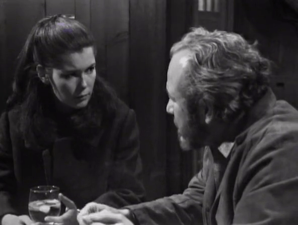 A real problem with Sam in general is his concerns are usually, if not baseless, kind of directionless. It makes sense for the character, because he’s paranoid and neurotic, but it creates narrative problems where his anxieties don’t always match up. It would be different if Sam had valid reason to suspect Vicky thought he was the murderer, and he was desperate to convince her otherwise, but he knows from Maggie this isn’t the case. Indeed, the threat to Sam now is pretty indirect. His fear is that Roger is the murderer, and once he’s apprehended, he will give Sam up for his part in the manslaughter cover-up 10 years back. Which is fine, but I only know this because I’ve watched these episodes multiple times on my computer machine. Audiences in 1966 are not likely to have remembered the conversation Roger and Sam had in this bar almost 50 episodes ago wherein Roger implied he’d give Sam up if he got taken away for Malloy’s death. So the average contemporary viewer would be entirely in their rights to not have any clue why Sam is so pants-wettingly terrified this time.