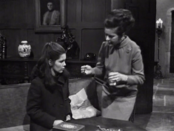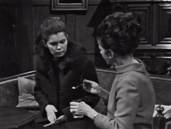 The Dark Shadows Wiki has a running thing in its episode recaps where it notes that Sam seems to smoke his pipe usually, and only switches to cigarettes when he’s freaking out and/or nervous. Which is most of the time regardless, but you do kinda see that this week, with him smoking the pipe when he went to sit with Maggie last episode, before she gave him the bad news about Vicky having evidence in the Malloy matter. Now he’s chomping on cigs. And it’d be really cool if this was a conscious decision on, say, Dave Ford’s part, given what a committed performer he is. It may also be that everybody just really liked smoking in 1966.