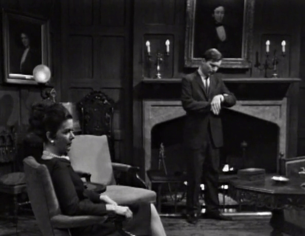 I should also point out that these ramblings do nothing to incriminate Roger Collins. But Roger, just like in the finished version (see his “Florida strategy”), thinks Sam has and, therefore, that Vicky knows something. In Episode 62, Roger responds to this (as well as increasing fears that Vicky may be able to crush the alibi he’s provided for the time of Malloy’s death) by trying to convince Vicky to leave. This doesn’t work, but it’s alright, because later that same night Vicky looks Burke in the face and tells him she believes Roger left Collinwood when he said he did, thereby providing Roger a pretty good alibi that keeps him off the hot seat for several weeks until that stupid pen turned up and dared to make the show interesting again.
